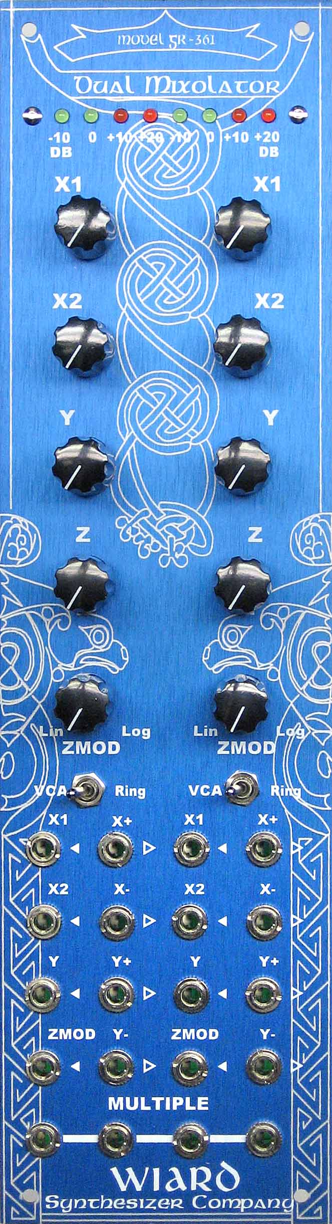It begins with a high quality DC coupled dual input VCA with individual volume controls (labeled X1 and X2). A "Y" input and output are included so that any combination of mixing, panning, crossfading, gain control, phase inversion and ring modulation are possible.